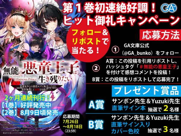 A賞(フォロー&引用リポスト):感想コメントを引用投稿してくださった方から抽選