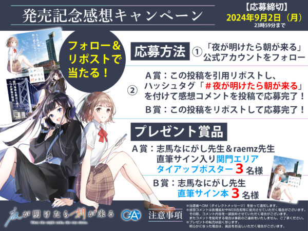 ②A賞:該当ポストを引用リポスト、ハッシュタグ「#夜が明けたら朝が来る」を付けてコメントを投稿!