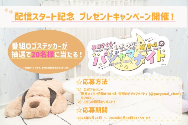 1)X公式アカウント「春日さくら・伊駒ゆりえ・橘 杏咲のパジャマナイト」(@pazyanai_chan)をフォロー。