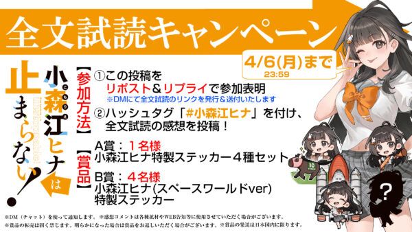 ③ハッシュタグ「#小森江ヒナ」を付けて全文試読の感想を投稿!