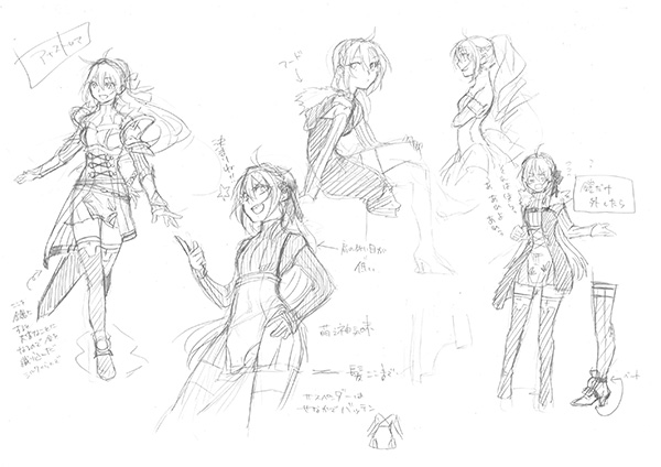描き込まれたキャラクターのラフの例