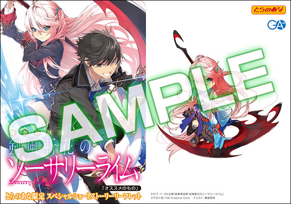 さて、今回紹介するのは「変奏神話群 剣風斬花のソーサリーライム(著:千羽十訊/イラスト:桑島黎音)」の店舗特典です!