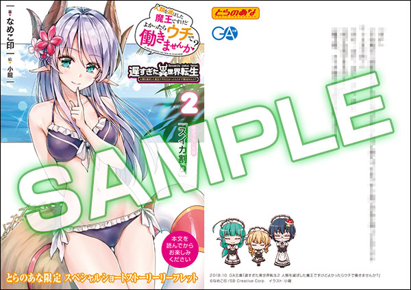 さて、今回紹介するのは「遅すぎた異世界転生2 人類を滅ぼした魔王ですけどよかったらウチで働きませんか?(著:なめこ印 イラスト:小龍)」の店舗特典です!