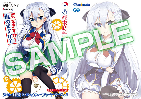 アニメイトで本作を購入すると、各店舗でraiou先生の美麗イラストを使用した、朝日乃ケイ先生の書き下ろしSSリーフレットをプレゼント!