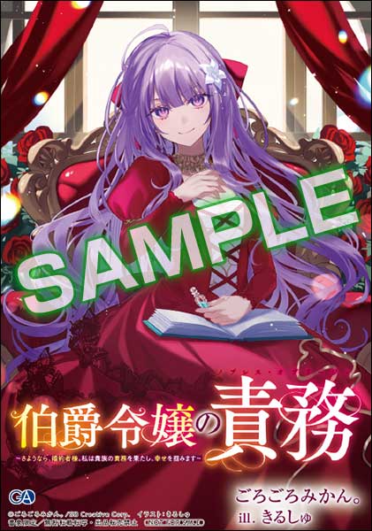 GAノベル3月刊「伯爵令嬢の責務 ~さようなら、婚約者様。私は貴族の責務を果たし、幸せを掴みます~」店舗特典情報!