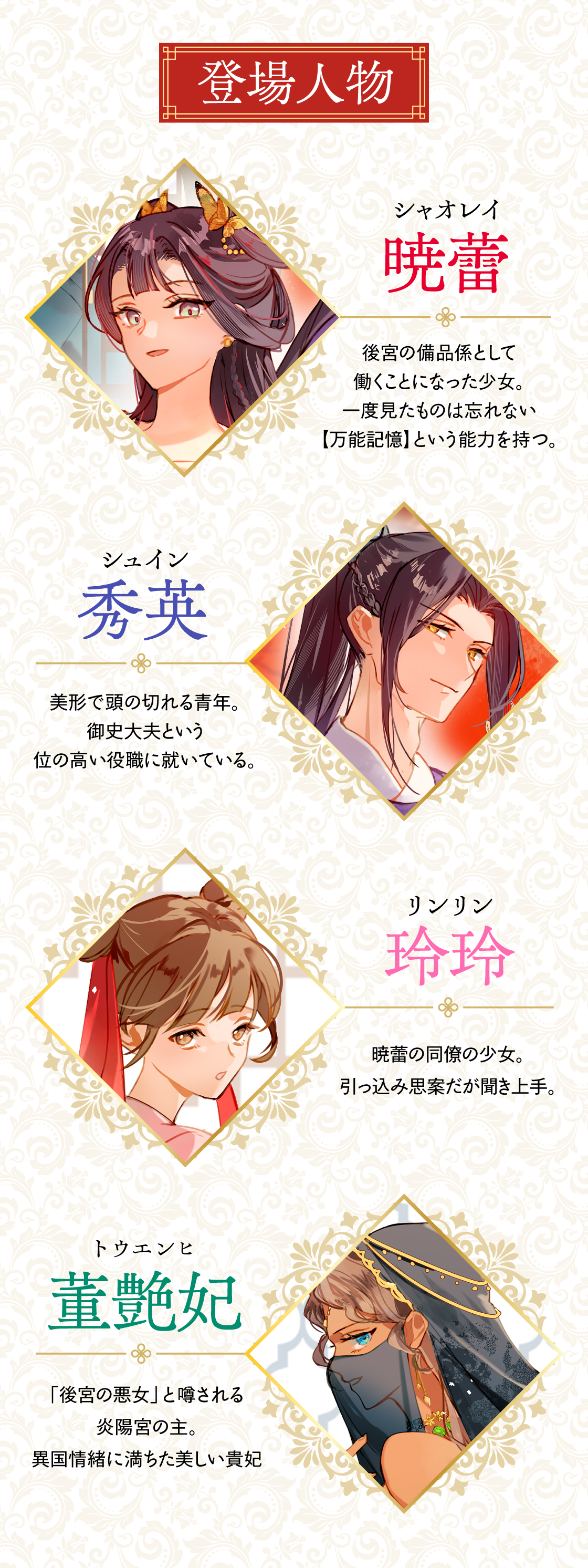 その頭脳で後宮を渦巻く闇に気づき、近づいていく。